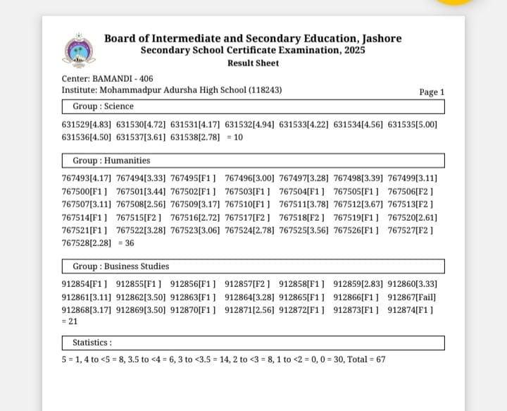 ছাত্র ছাত্রীদের রেজাল্ট বিবরণী